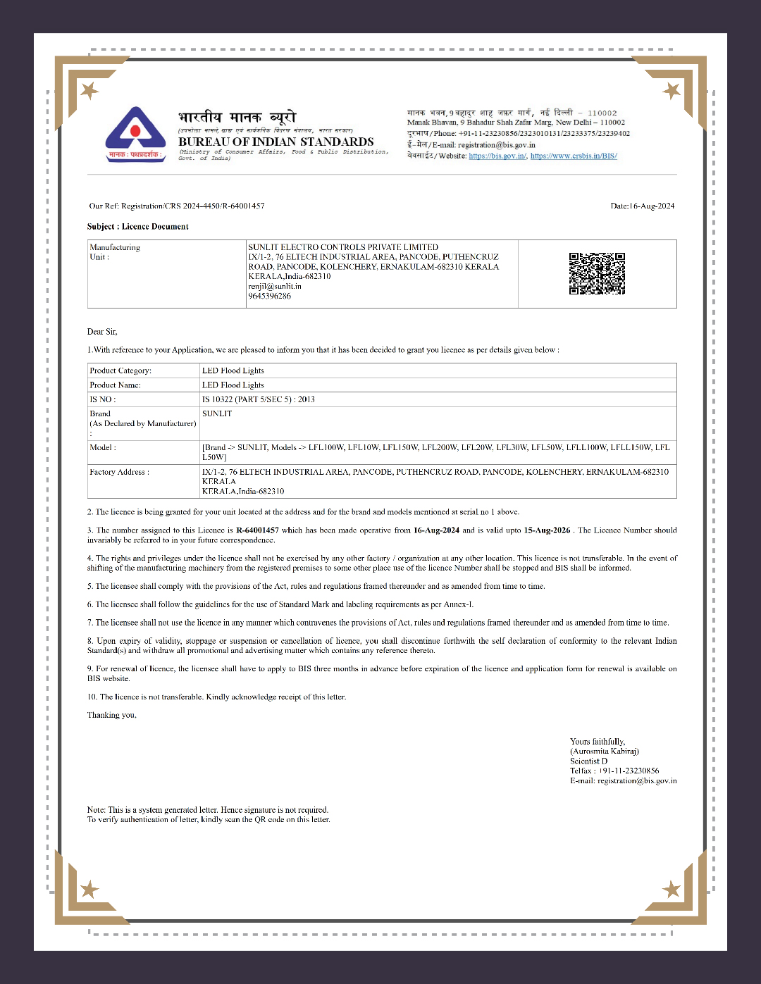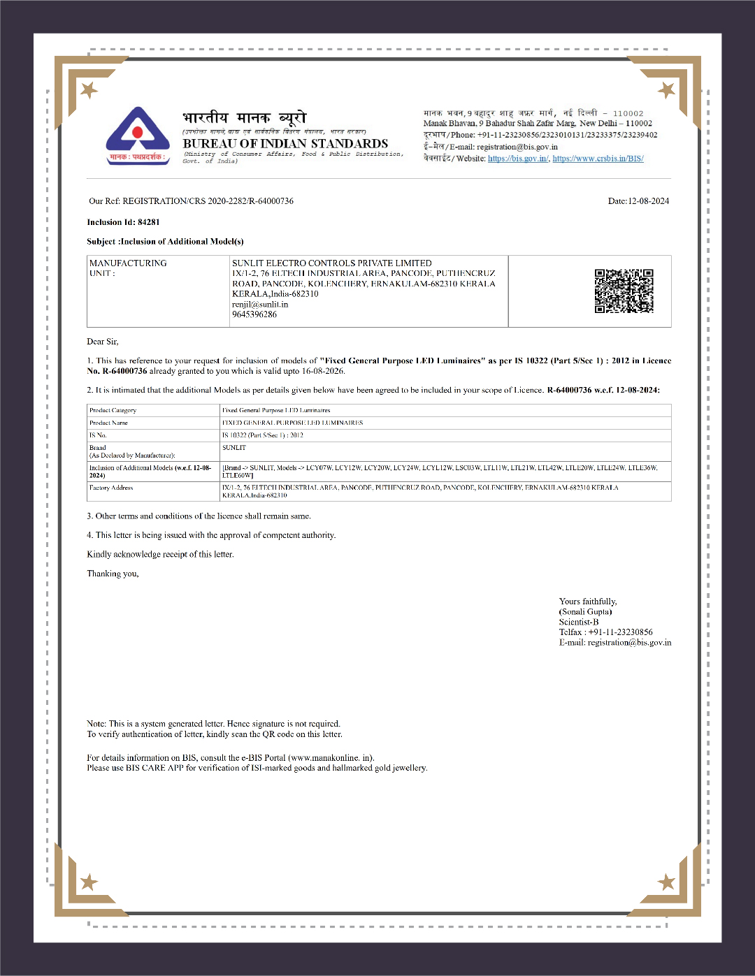 SUNLIT, based in Pancode, Kerala, has been a pioneer in LED lights, battens, and lighting solutions since its establishment in 1993. With over 50 carefully crafted products, we cater to diverse needs across residential, commercial, and industrial sectors. Our commitment to innovation and sustainability drives us to continuously develop energy-efficient solutions that prioritize both performance and environmental responsibility. At SUNLIT, we're not just illuminating spaces; we're lighting the path to a brighter future. By combining cutting-edge technology with a dedication to reducing energy consumption, we're shaping a world where efficiency meets excellence. Join us in our mission to transform lighting and make a positive impact on communities and the planet alike.